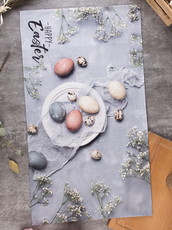 Это пасхальное полотенце из хлопка станет тёплым и душевным дополнением к празднику. Его сдержанный серый цвет и лаконичный дизайн создают атмосферу уюта и спокойствия, напоминая о самом светлом дне весны. Плотная саржевая ткань приятна на ощупь и надёжна в использовании изо дня в день.