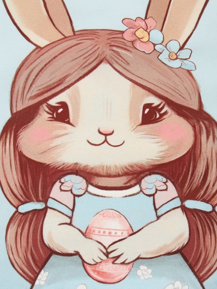 * Нежный голубой цвет с пасхально-анималистичным сюжетом поддерживает праздничную атмосферу.