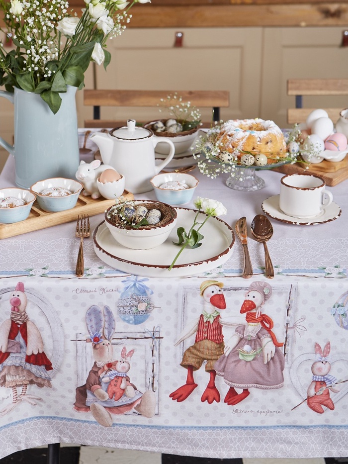Скатерть «Этель. Пасхальные Тильды», 147×250 см, 100% хлопок, саржа 190 г/м²