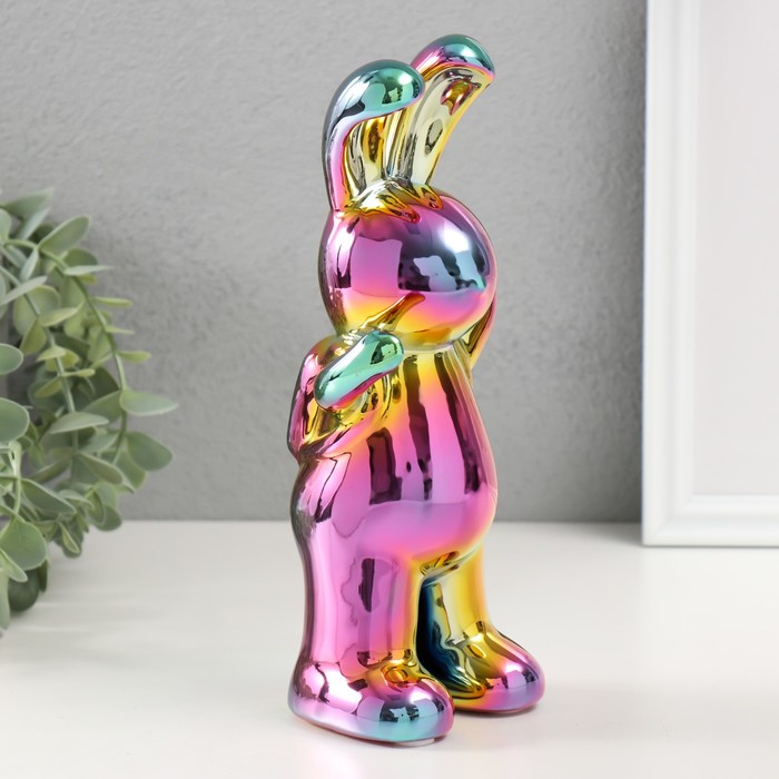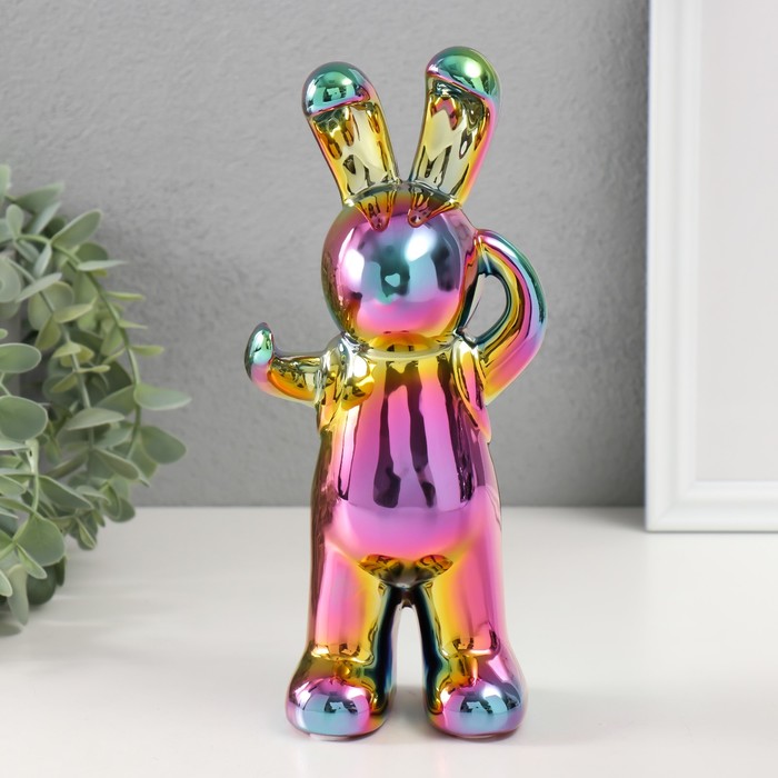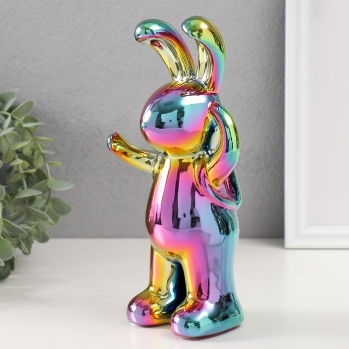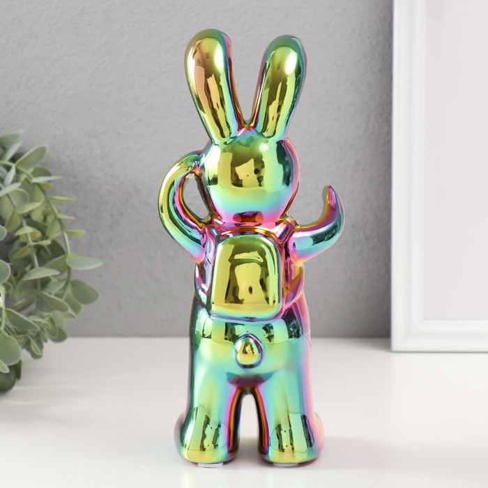 Эта керамическая фигурка зайца — элегантный акцент для интерьера и душевный подарок. Образ современного кролика в стильном зелёном хамелеоновом окрасе притягивает взгляд и создаёт лёгкое, весеннее настроение. Изысканное гальваническое покрытие придаёт поверхности мягкий металлический блеск, делая каждую деталь объёмной и выразительной.