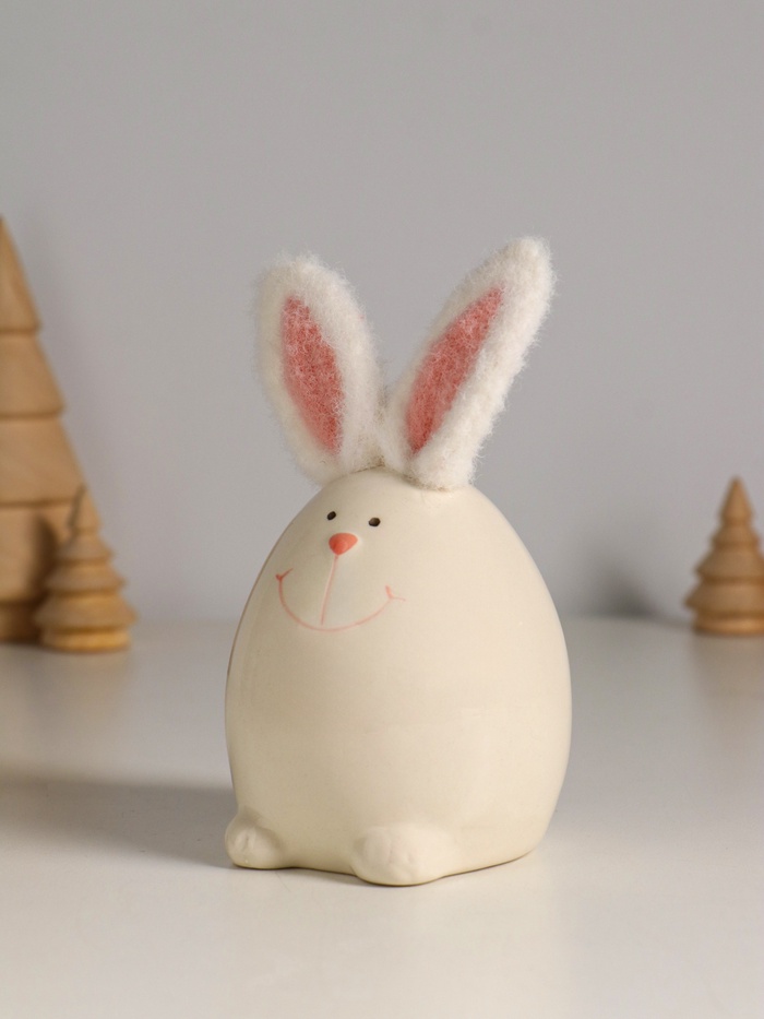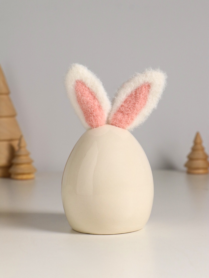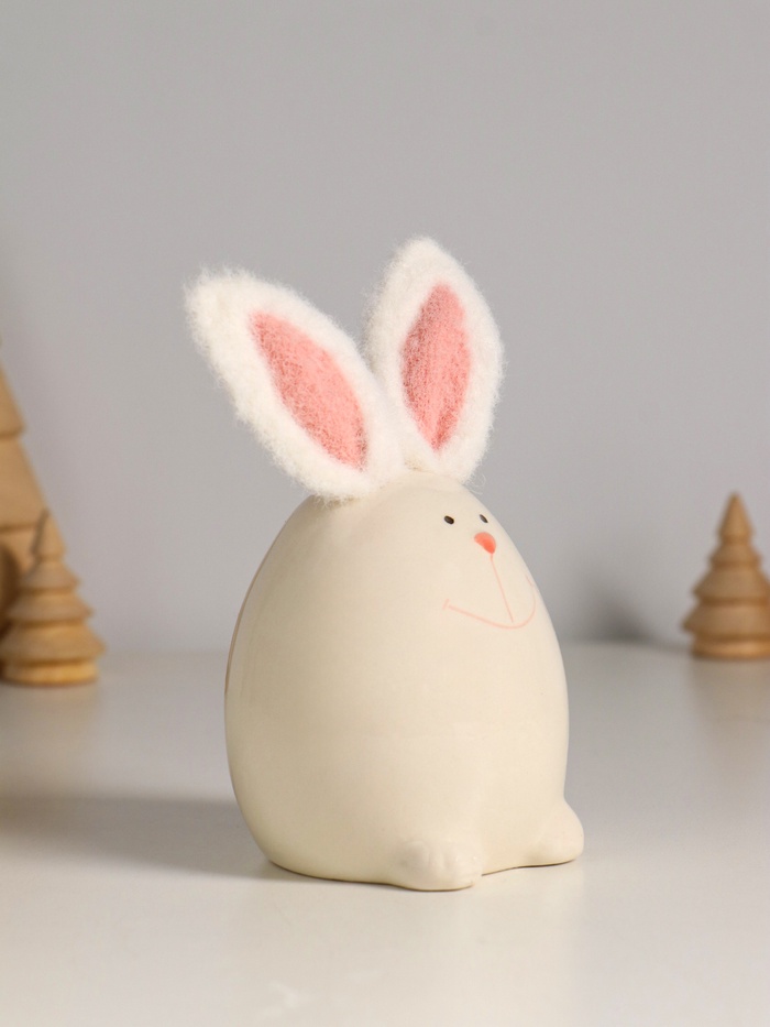 Изготовленная из керамики и дополненная элементами текстиля, эта белоснежная композиция сочетает прочность и уют. Белый цвет — символ чистоты и света — идеально передаёт дух Пасхи, но при этом не привязан к одному празднику: благодаря универсальной тематике фигурка остаётся актуальной в интерьере круглый год. Её форма, напоминающая яйцо, усиливает ассоциации с зарождением нового, надеждой и добротой.