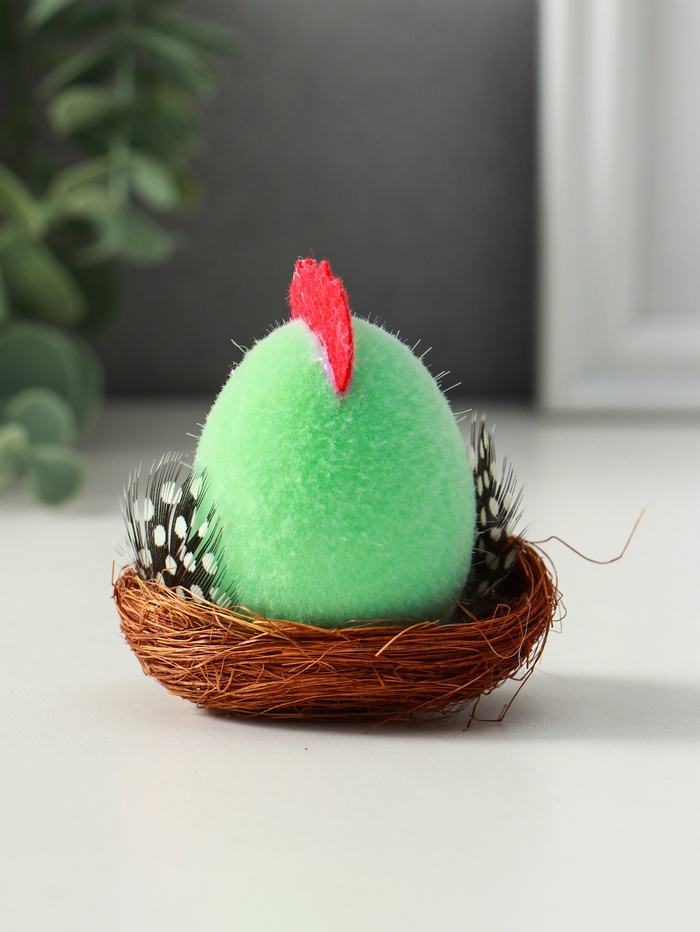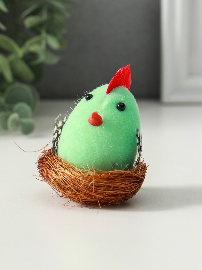 Этот пасхальный цыплёнок в гнезде станет тёплым символом праздника и уюта в вашем доме. Композиция создаёт настроение весеннего пробуждения и домашнего тепла, идеально вписываясь в пасхальное убранство стола или праздничный декор интерьера. Нежная фигурка птенца, окружённая пушистым гнездышком, вызывает улыбку и дарит ощущение заботы.