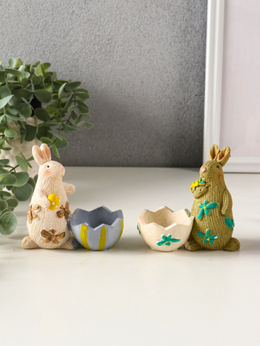 Эти пасхальные зайчики приносят в дом тепло и уют весеннего праздника. Набор из двух фигурок станет ярким акцентом на праздничном столе или трогательным подарком для близких, создавая особое настроение.