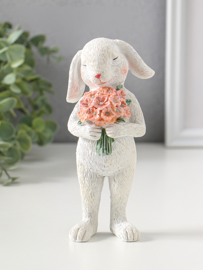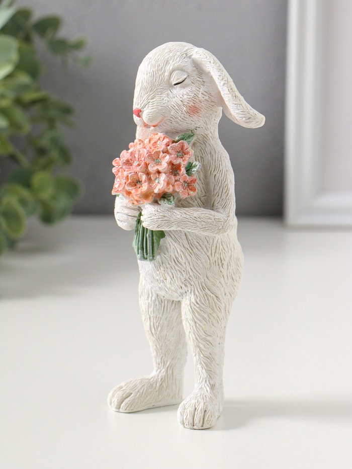 Фигурка создаёт атмосферу уюта и праздника. Это удачный выбор для подарка на 8 Марта, Пасху или День рождения. Образ милого кролика с букетом символизирует заботу и добрые пожелания, не требуя слов. Такое украшение будет радовать долгое время, напоминая о важном моменте или человеке.