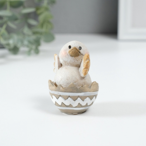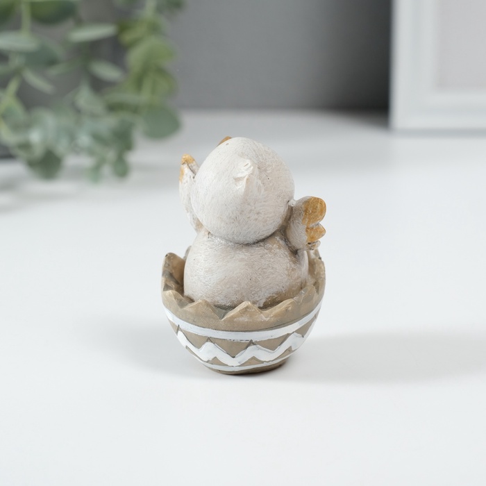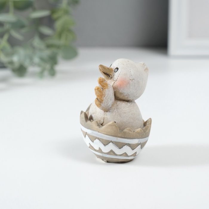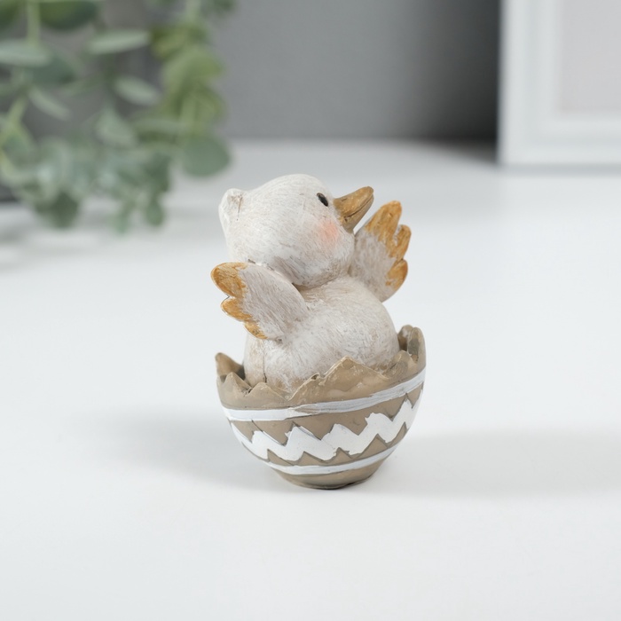 Изделие выполнено из высококачественного полистоуна, который обеспечивает прочность и долговечность. Бежевый цвет основы дополняется яркими акцентами, создавая нежный и жизнерадостный образ. Детализированный дизайн подчёркивает мастерство исполнения: от текстуры скорлупки до мельчайших деталей цыплёнка — каждая черта продумана до мелочей.