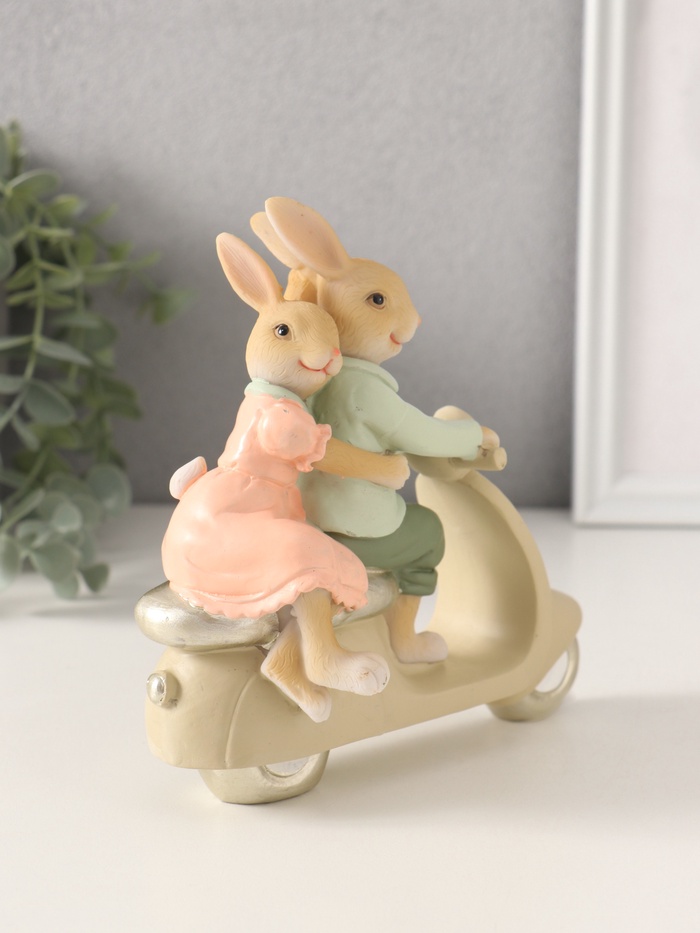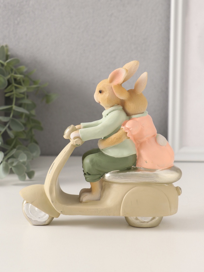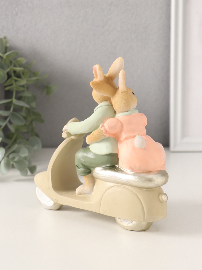 Эта полистоуновая фигурка с двумя кроликами на мопеде станет ярким акцентом в интерьере. Динамичная скульптура передаёт настроение беззаботного путешествия и дружеской близости. Универсальная тематика делает её уместным подарком на день рождения, Пасху или просто как знак внимания для ценителя оригинального декора.