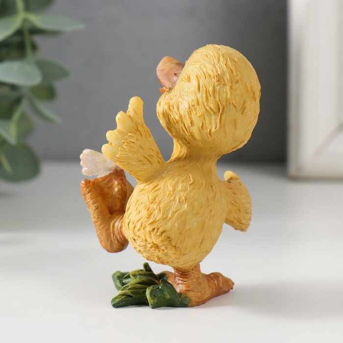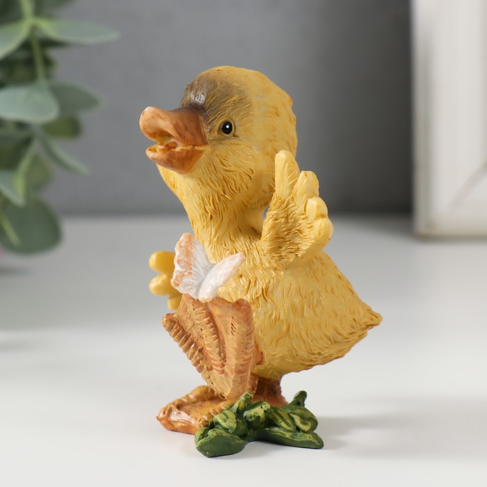 Изготовленный из прочного и долговечного полистоуна, этот миниатюрный шедевр не боится времени. Его компактные размеры (8×5.5×5.5 см) позволяют разместить его на полке, рабочем столе или подоконнике, создавая мгновенное настроение. Детализация фигурки — от пушистых перьев утёнка до нежных крыльев бабочки — делает её настоящим произведением искусства.