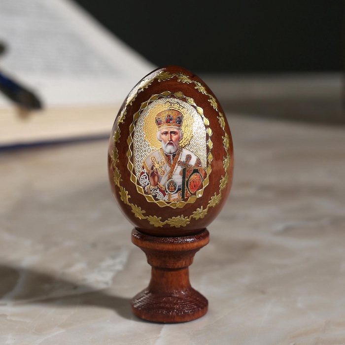 Фигурка «Яйцо на подставке. Икона Николай Чудотворец», дерево