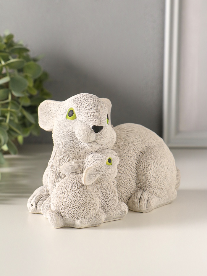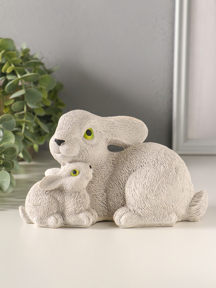 Эта серая гипсовая статуэтка кроликов станет тёплым и душевным акцентом для вашего праздника. Фигурки создают атмосферу уюта и ожидания чуда, идеально подходя для пасхального декора или в качестве милого подарка маме. Композиция из двух кроликов — это готовое праздничное украшение, которое принесёт в дом весеннее настроение.