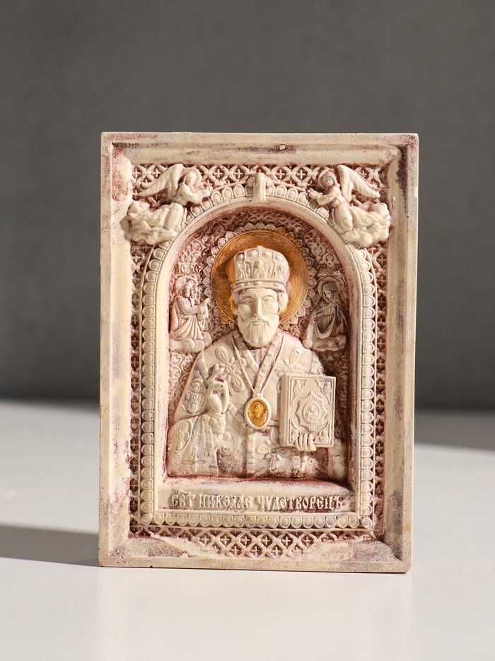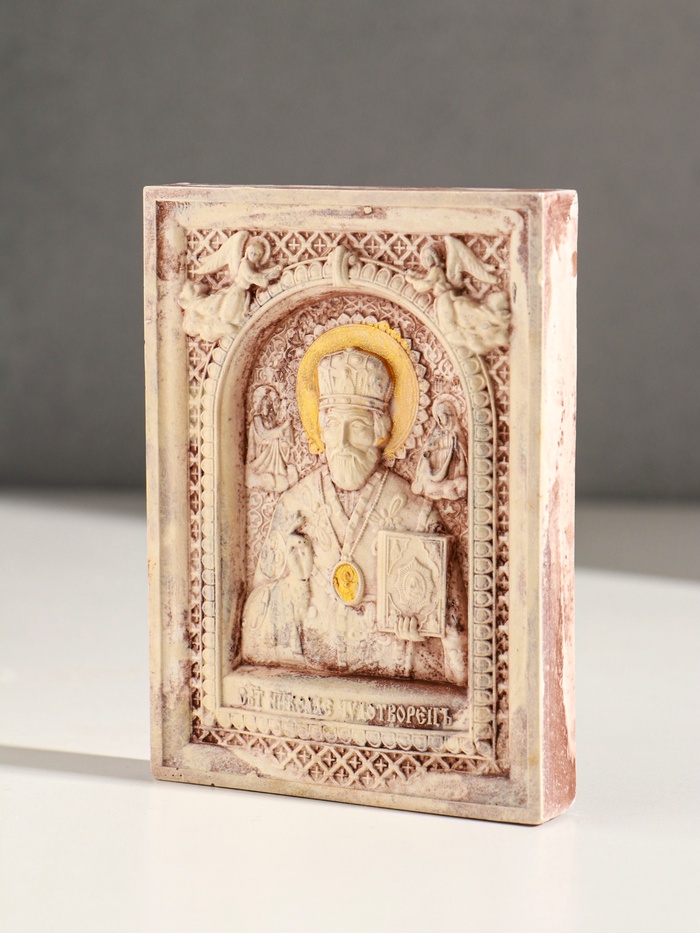 * Материал — гипс: тёплый на ощупь, передаёт тонкие черты лика.