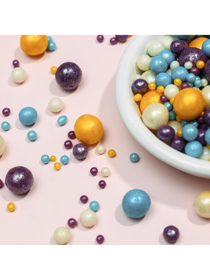 Декоративные цветные звездочки, шары или сердечки - это идеальное съедобное украшение для выпечки, пирожных, десертов и леденцов. Также эта разноцветная посыпка прекрасно подходит для декорирования пасхальных куличей.