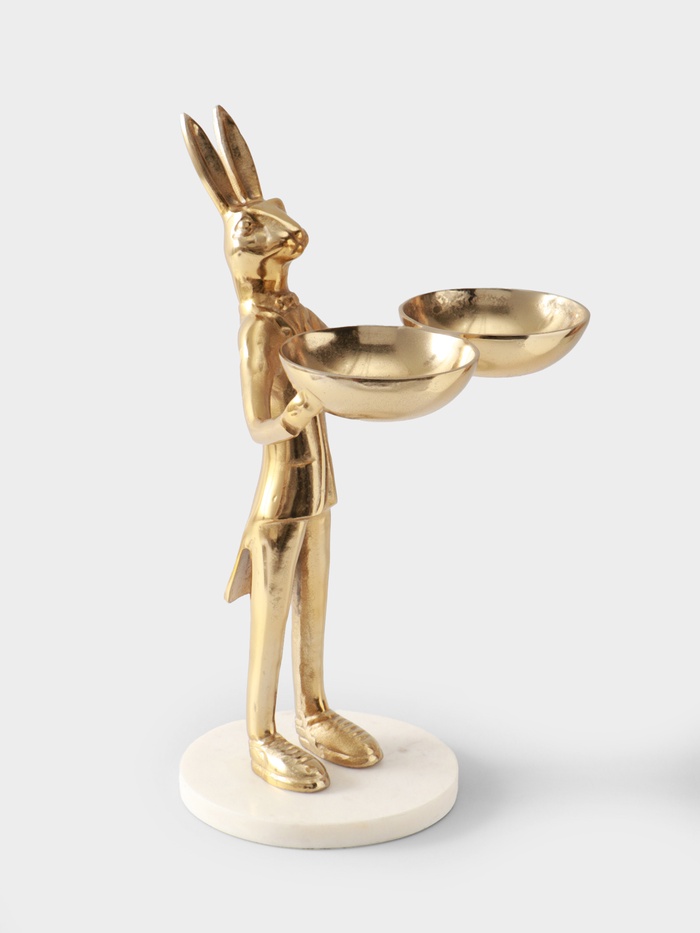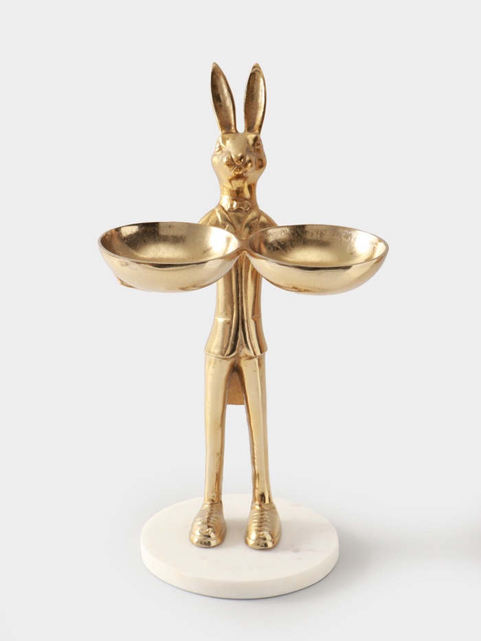 Конфетница двойная «Кролик угощает», 19×26×48 см, алюминий