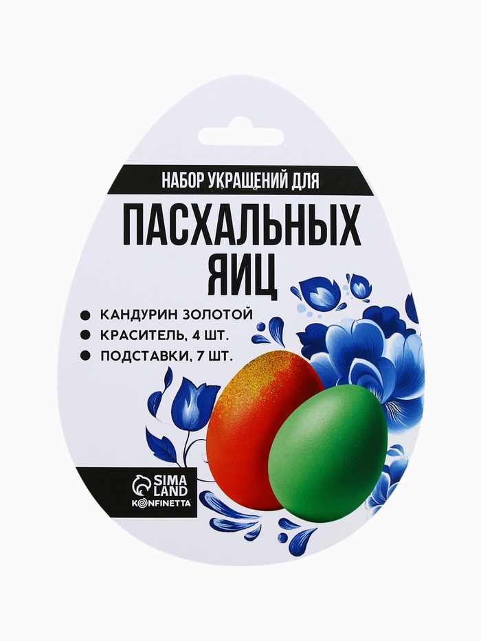 Состав набора: пищевой краситель сухой, кандурин, подставки для яиц (7 шт.)