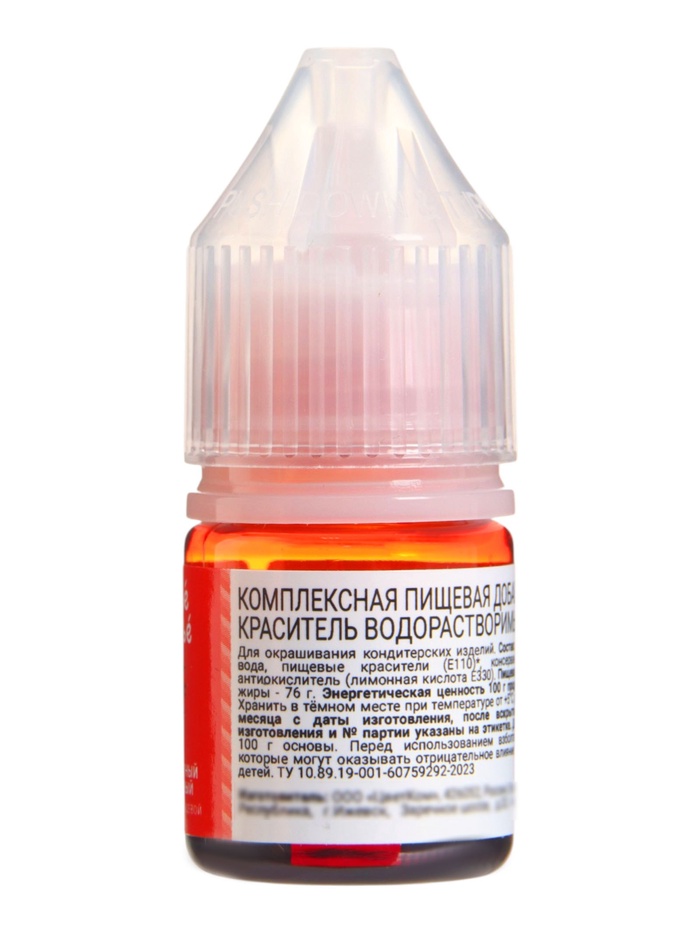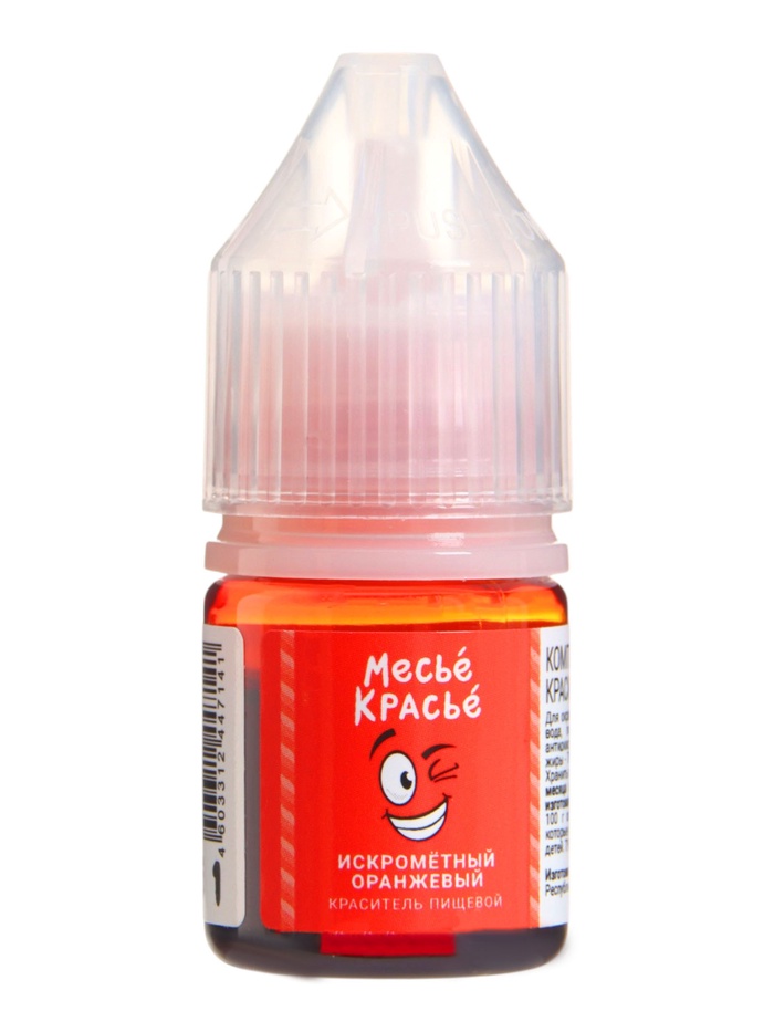 Жидкий водорастворимый краситель «Искрометный оранжевый» наполнит праздничные блюда ярким цитрусовым оттенком. Состав создан для окрашивания яиц, глазури и крема без лишних сложностей.
