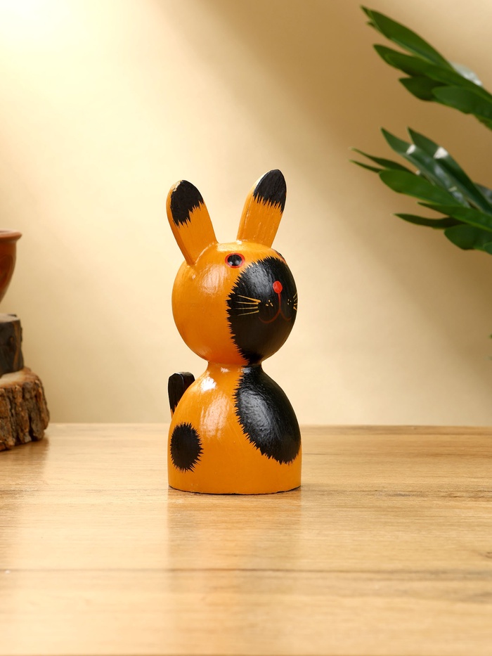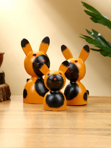 Набор деревянных фигурок «Зайки» в солнечном рыжем цвете — очаровательное украшение для любого интерьера. Три зайца разной высоты (10, 13 и 14 см) из натурального дерева с контрастными чёрными деталями создают уютную атмосферу. Яркий дизайн делает их уместными как в детской комнате, так и в гостиной.