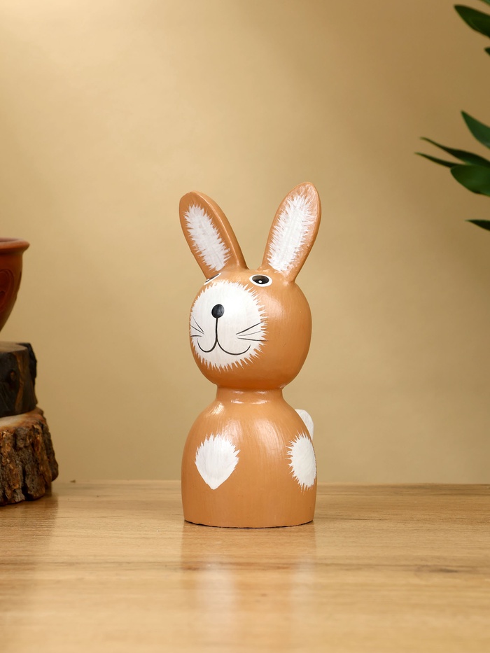 Набор деревянных фигурок «Зайки» в теплых коричневых тонах — уютное украшение для любого дома. Три зайца разной высоты (10.5, 13 и 15 см) из натурального дерева с нежными белыми акцентами создают атмосферу домашнего тепла. Универсальный дизайн делает их уместными как в спальне, так и в гостиной.