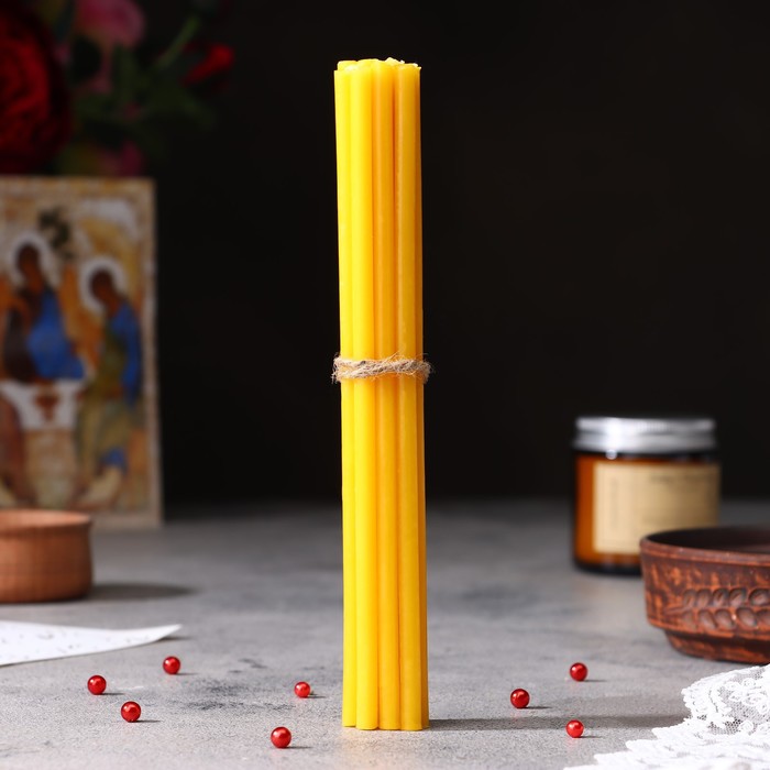Эту свечу вы сможете использовать как в церковном, так и в домашнем обиходе для религиозных обрядов. Она не содержит ароматических примесей и красителей.