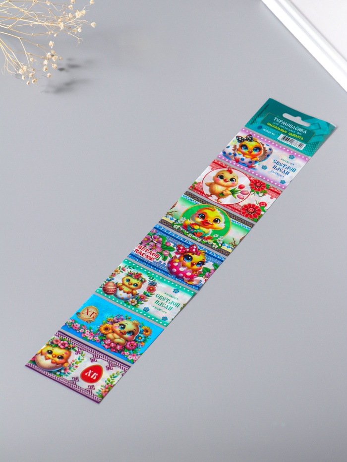 Эти термонаклейки превратят пасхальные яйца в ярких цыплят за считанные секунды. Просто поместите плёнку на варёное яйцо и опустите в горячую воду — изображение чётко и прочно зафиксируется. В наборе достаточно материала для украшения семи яиц, чтобы создать целое весёлое семейство для праздничного стола или пасхальной корзинки.