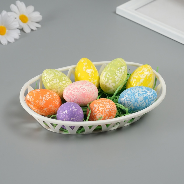 Пасхальный декор для творчества «Яйца с кружевом в гнездышке», набор 9 шт., настольная фигурка, 3.5×12×18 см