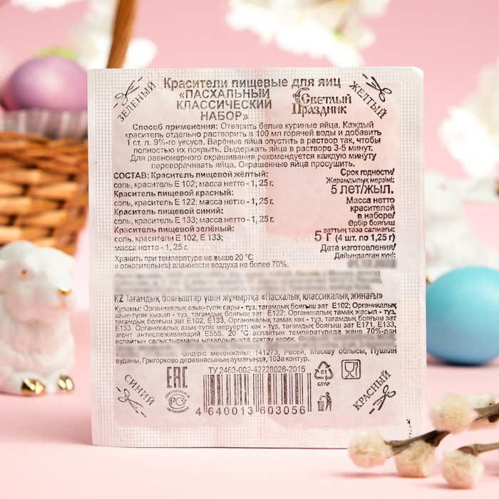 Пищевой краситель для яиц, пасхальный набор «Классический», 4 цвета, 5 г