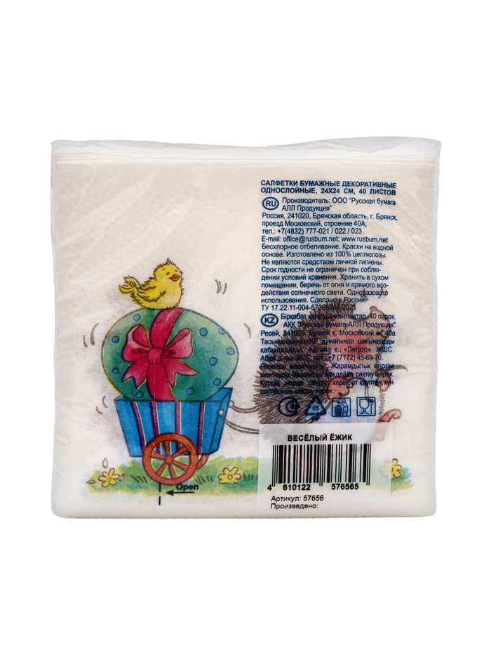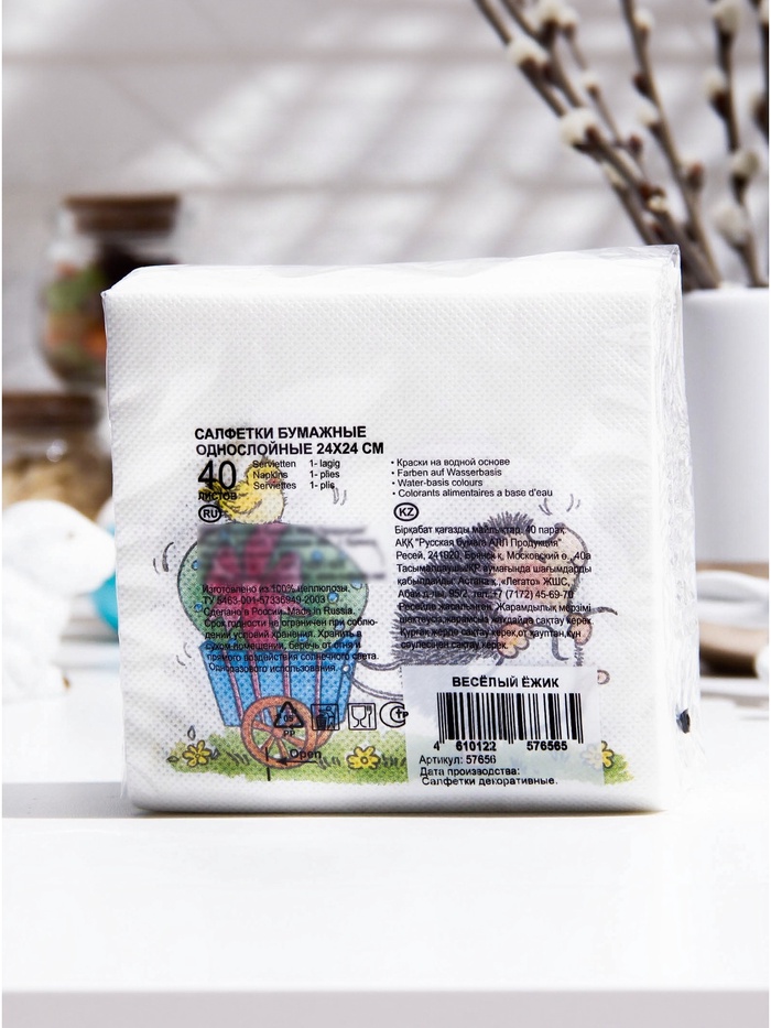 Пасхальные сервировочные бумажные салфетки Desna Design с рисунком «Веселый ёжик» - это отличное украшение для вашего праздничного стола. Идеально подойдут как для сервировки, так и в качестве декора и украшения в домашних условиях или на больших мероприятиях. Праздничные салфетки с пасхальным рисунком будут хорошим подарком для родных и близких. Данные салфетки можно использовать так же для декупажа и коллажей.