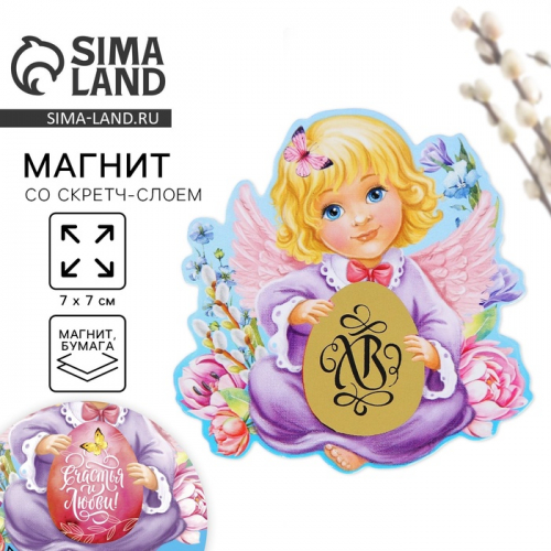 Магнит со скретч-слоем «Ангел» на пасху, 7×7 см