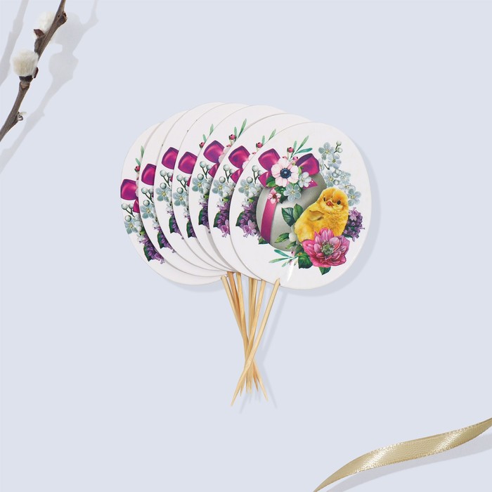 С помощью данного набора вы сможете украсить яйца и куличи к светлому празднику Пасхи. В комплект входит 7 термонаклеек, 7 топперов для кулича и 7 подставок для яиц.
