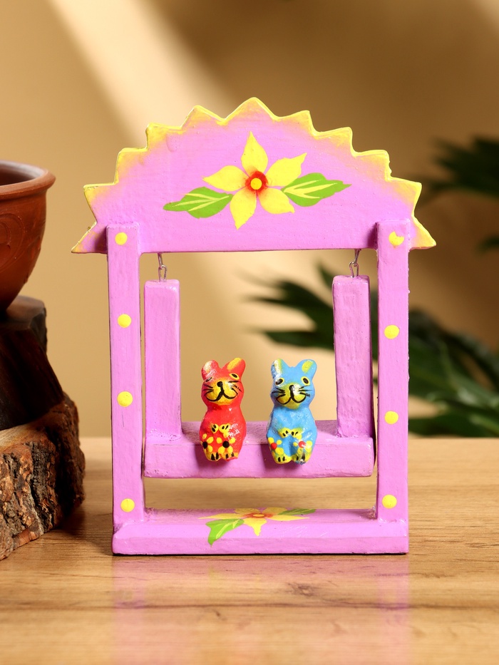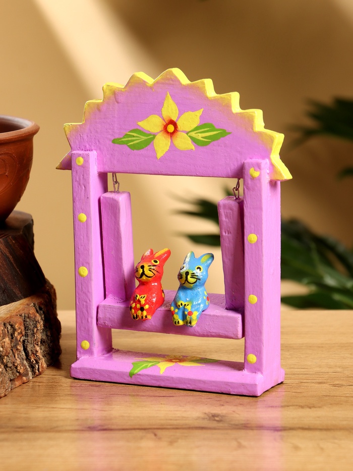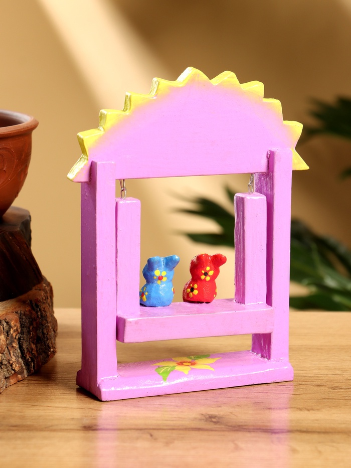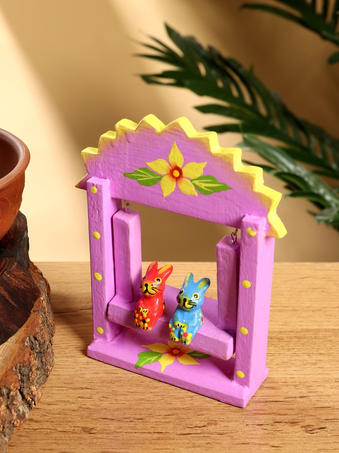 Сувенир «Зайки на качелях», 11×5.4×14.4 см, дерево, сиреневый