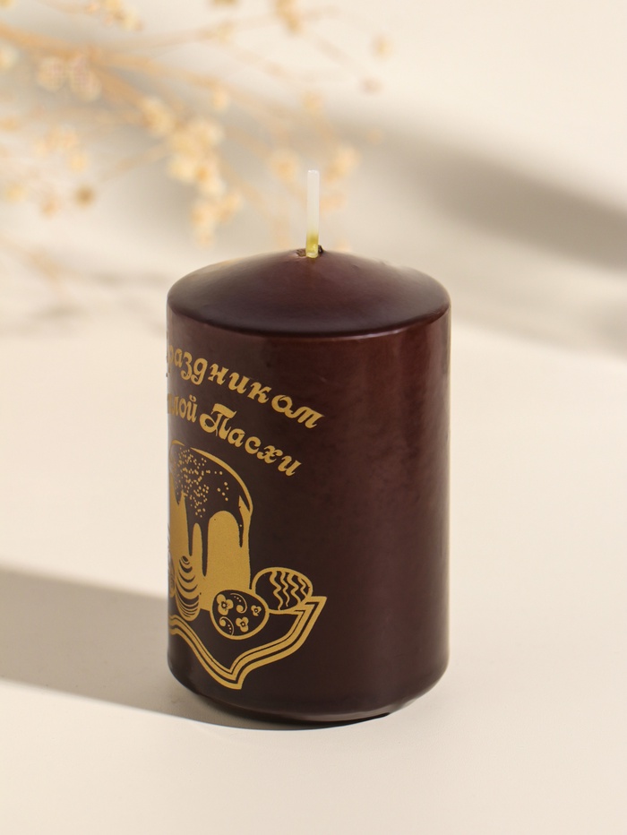 Зажжённая во время пасхальной трапезы или утренней молитвы, эта свеча становится центром торжества. Её пламя символизирует свет веры и радость Воскресения. Чёрный цвет цилиндра подчёркивает торжественность момента, делая свечу уместным атрибутом как для личного молчания, так и для празднования в кругу семьи. Это простой и глубокий способ визуально выразить пасхальную радость.