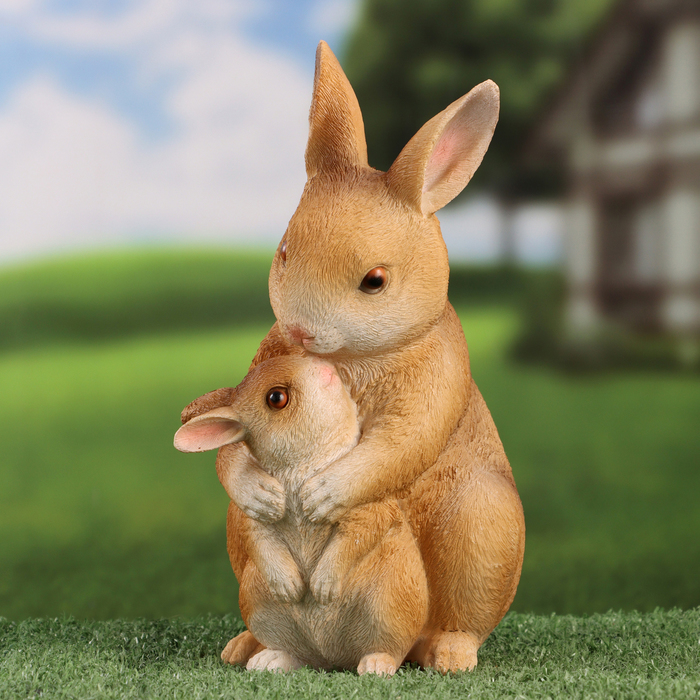 Трогательная композиция, которая наполнит ваш дом теплом и уютом — фигурка заботливой зайчихи с малышом. Выполненная из качественного полистоуна, эта скульптура передаёт всю нежность материнской заботы в милых деталях: от бережного жеста лапки до любопытного взгляда зайчонка.