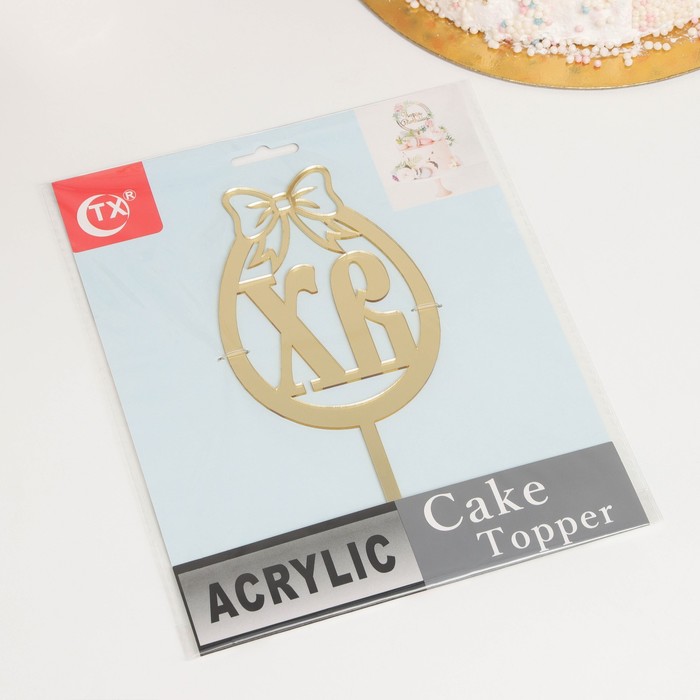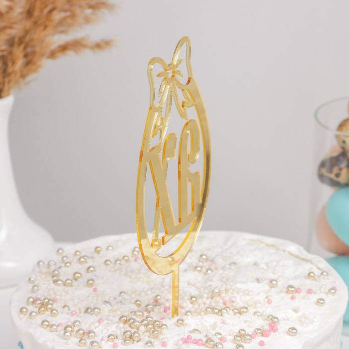 Пасхальный топпер для торта ХВ, размером 8,5x17 см, выполнен в элегантном золотом цвете, станет изысканным украшением любого праздничного кулича. Его утончённый дизайн подчеркивает торжественность праздника, создавая атмосферу тепла и светлого настроения на вашем столе.