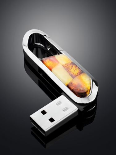 Брелок-карабин с флеш картой, украшенный янтарной мозаикой