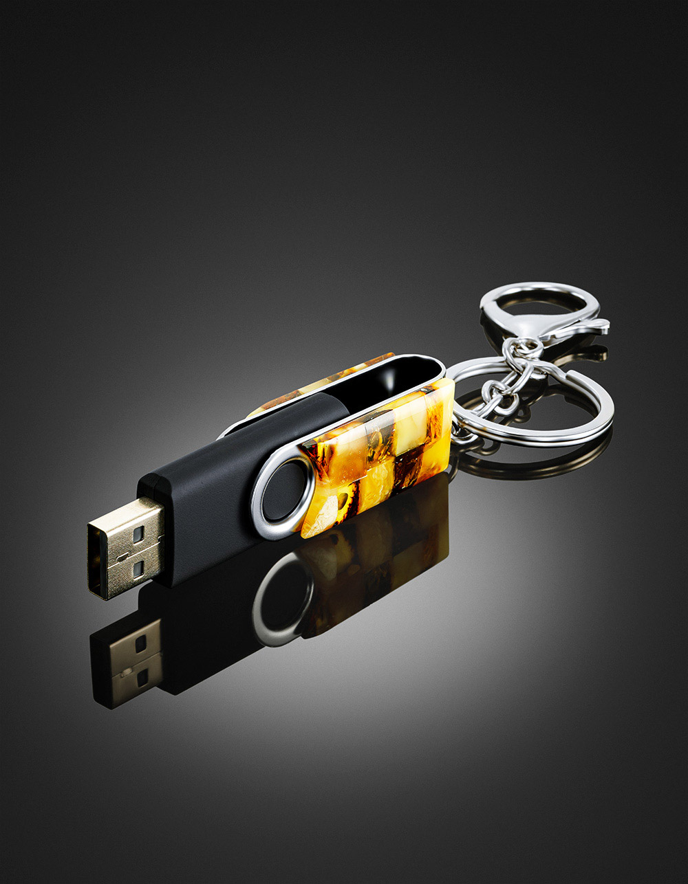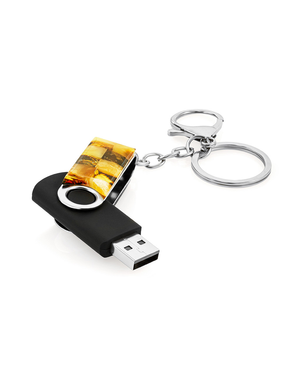 Брелок с USB-флэш-накопителем в корпусе с мозаикой из натурального янтаря