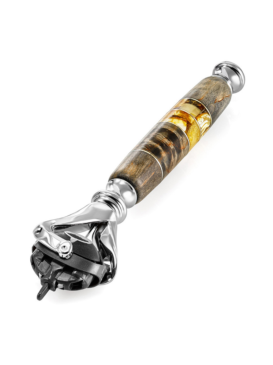 Бритвенный станок с ручкой из дерева и натурального янтаря