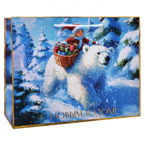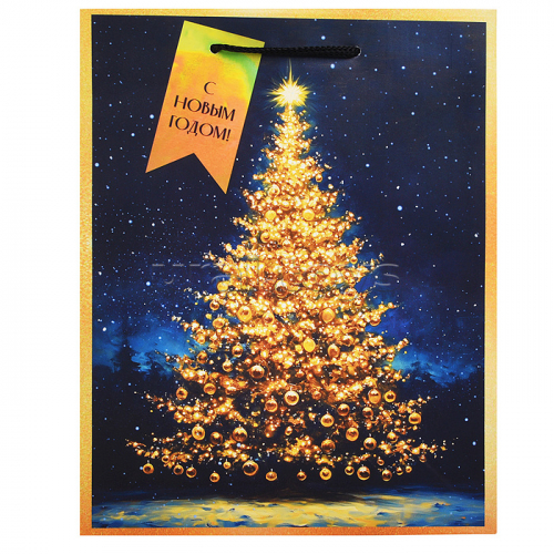 Бумажный пакет для сувенирной продукции с ламинацией, с шириной основания 33 cм.