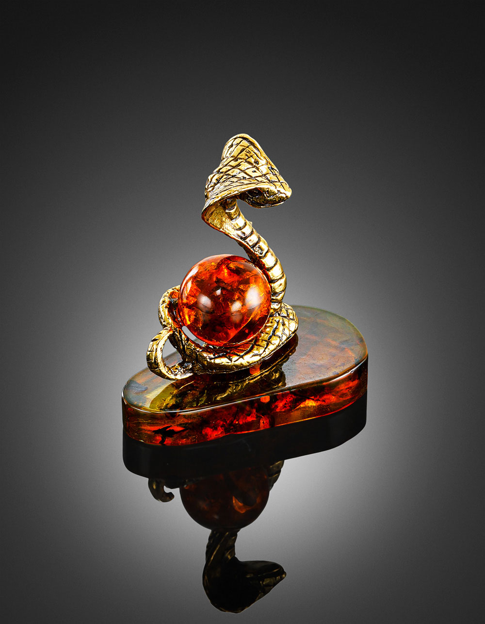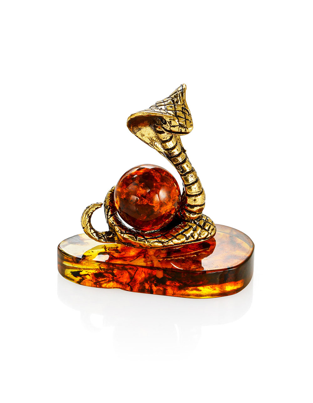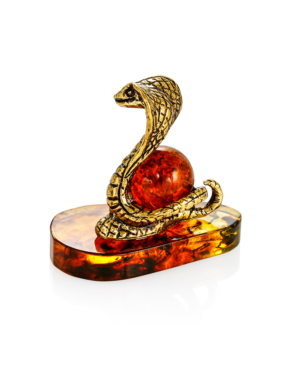 Декоративная фигурка «Змейка кобра» на янтарной подставке