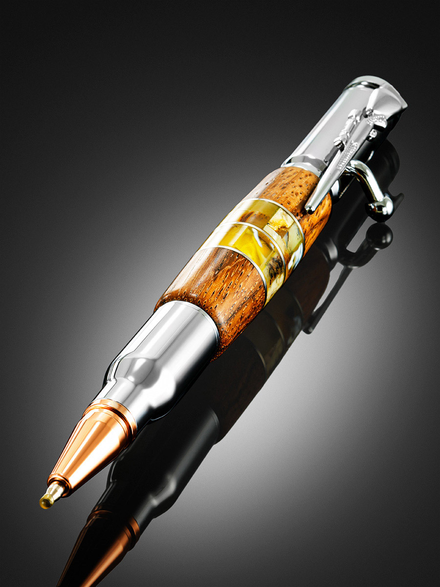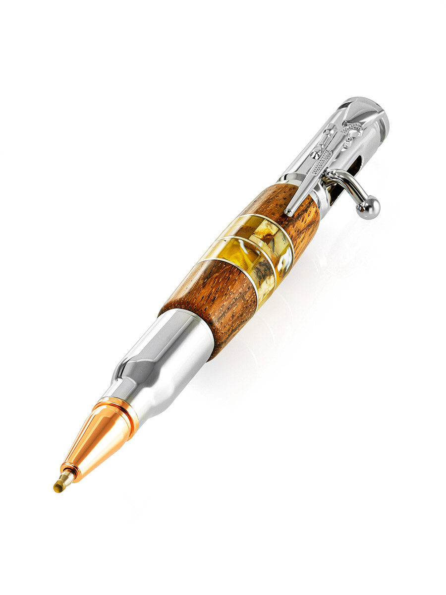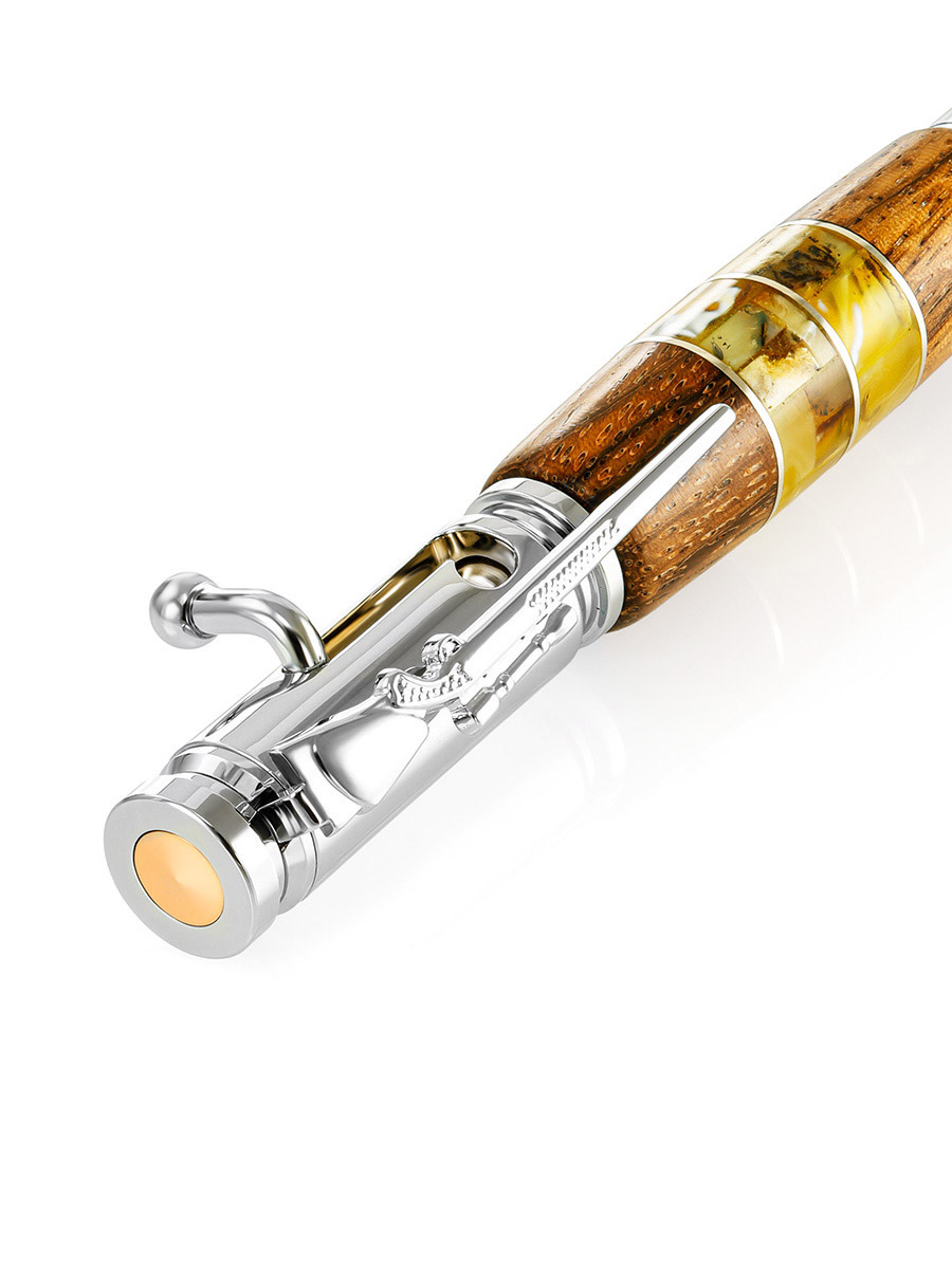 Дизайнерская ручка с натуральным янтарём и деревом