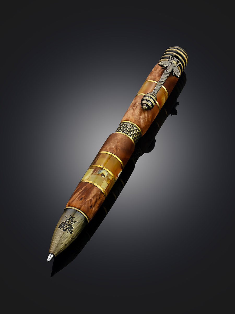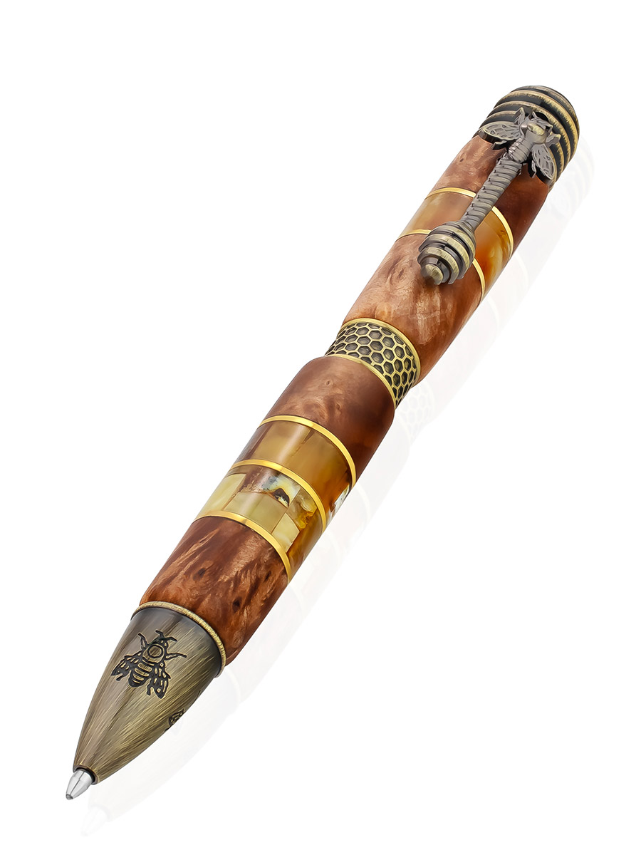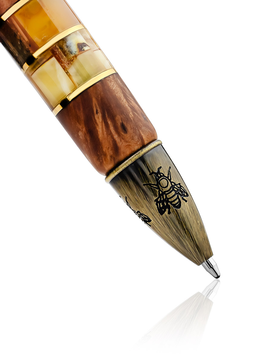 Эксклюзивная ручка из дерева и натурального балтийского янтаря «Медок»