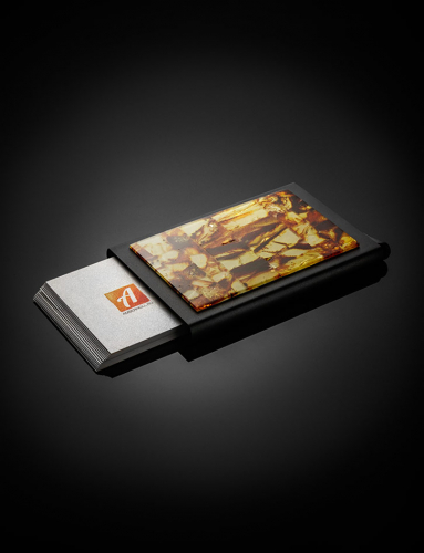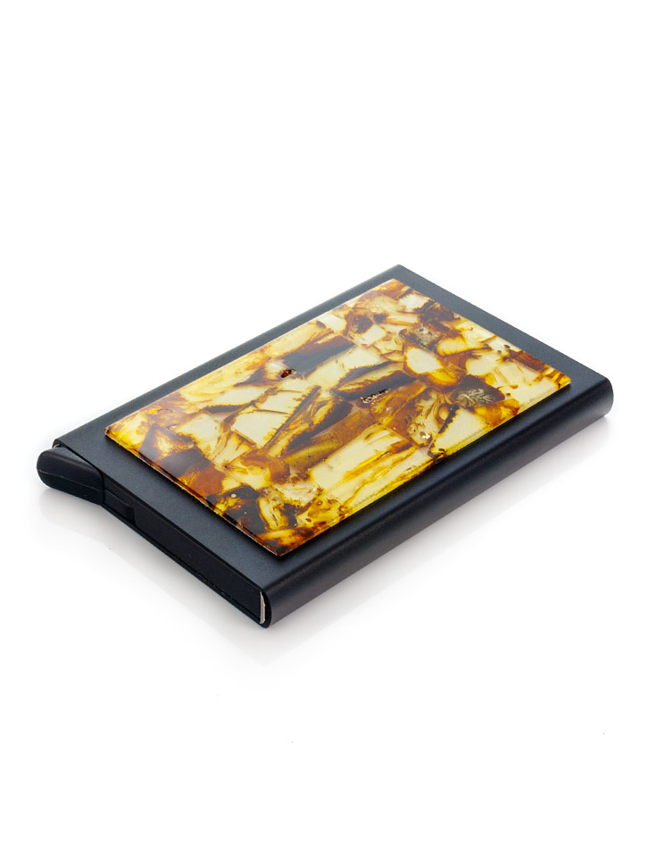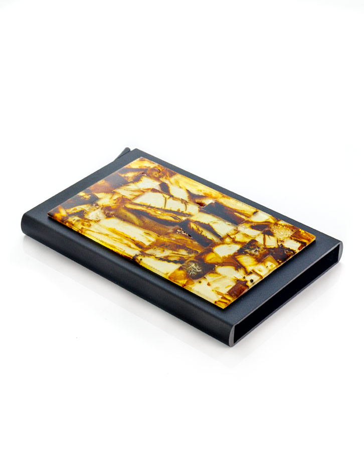 Холдер для визитных карточек, украшенный натуральным янтарём