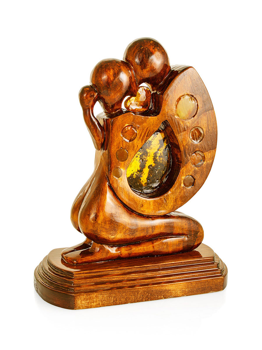 Интерьерная статуэтка «Инь-Ян» из дерева и натурального янтаря