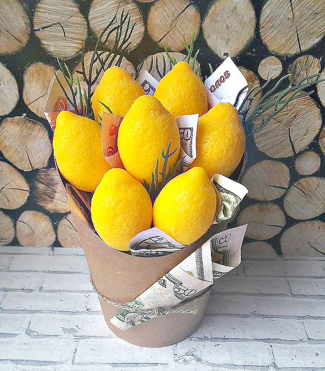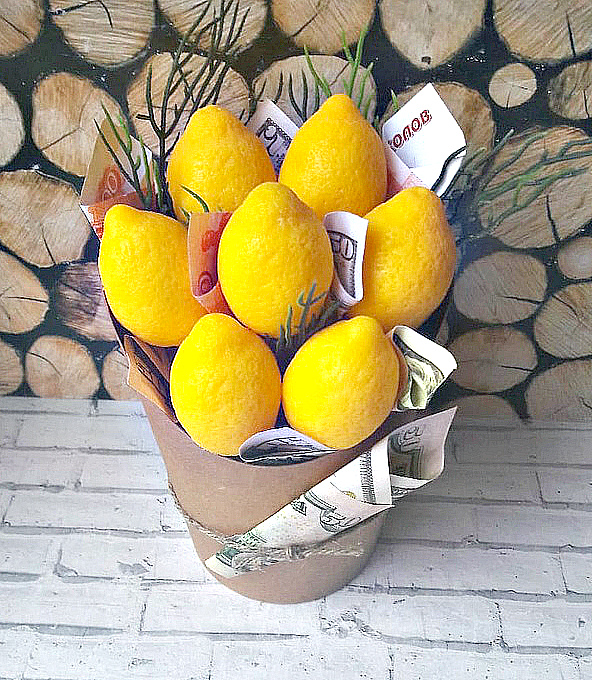 Денежный букет из мини лимонов