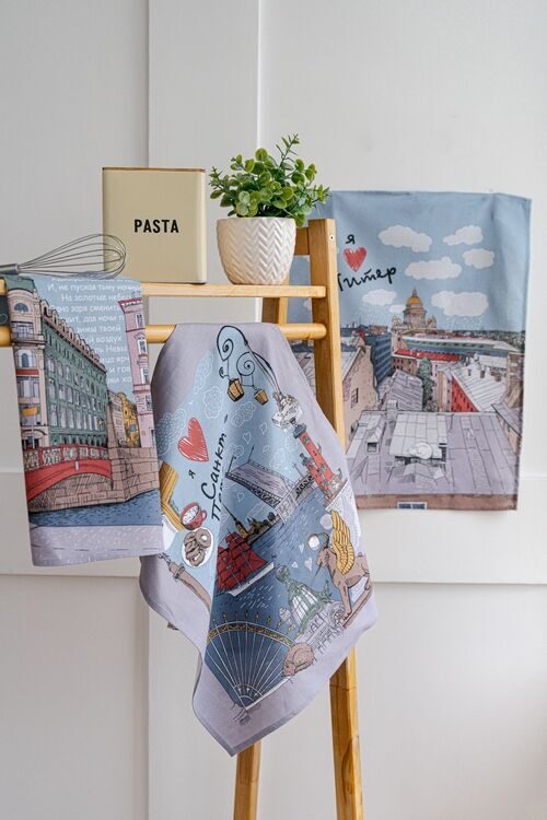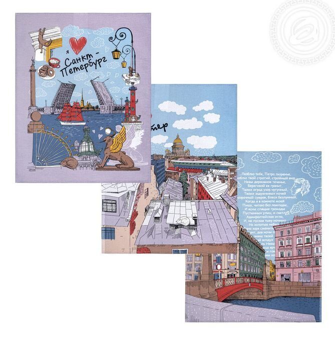 К-т полотенец "Белые ночи" 50*60 см. - 3 шт. рогожка хлопок 100%
