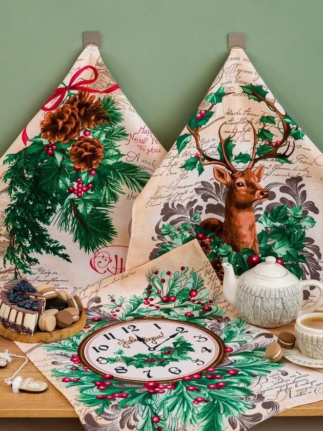 К-т полотенец "Чудесное время" 50*60 см. - 3 шт. рогожка хлопок 100%