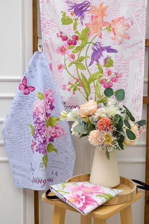 К-т полотенец "Цветы и письма" 50*60 см. - 3 шт. рогожка хлопок 100%