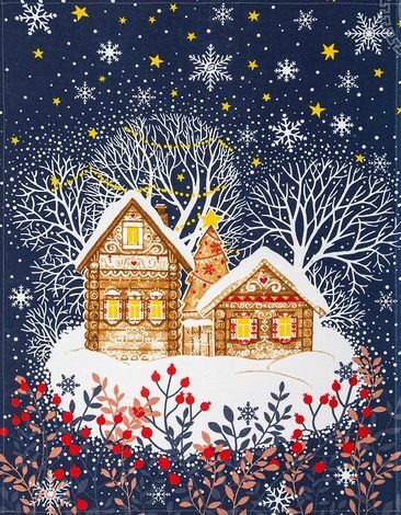 К-т полотенец "Колядки" 50*60 см. - 3 шт. рогожка хлопок 100%