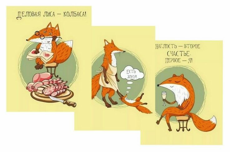 К-т полотенец "Лиса-колбаса" 50*60 см. - 3 шт. вафля хлопок 100%