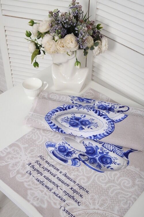 К-т полотенец "Мамин чайник" 50*60 см. - 3 шт. рогожка хлопок 100%