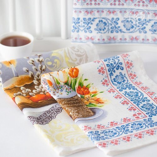 К-т полотенец "Пасхальный" 50*60 см. - 3 шт. рогожка хлопок 100%