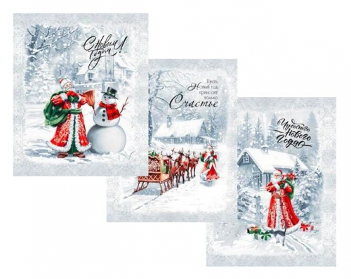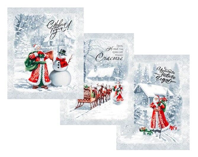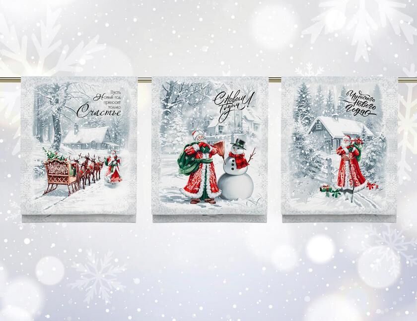 К-т полотенец "Ретро Новый год" 50*60 см. - 3 шт. рогожка хлопок 100%