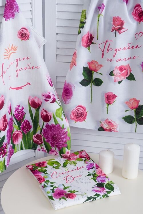 К-т полотенец "Романтик" 50*60 см. - 3 шт. рогожка хлопок 100%